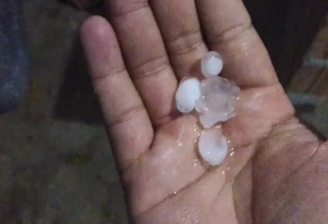 Além da queda do granizo, temporal causou pontos de alagamento na cidade de Barra, nesta segunda-feira (20). Não há registro de feridos.