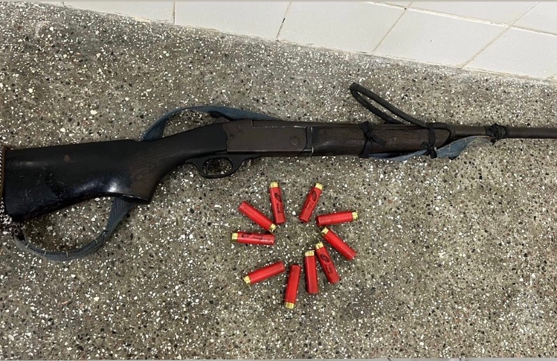 Ao chegar ao local, o autor colaborou com a guarnição e revelou onde havia escondido a arma de fogo. Uma carabina CBC, calibre .28 com 10 munições intactas. A criança foi encontrada na casa e entregue aos cuidados da mãe.